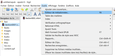Le but est d'utiliser Sigil pour enrichir l'epub réalisé sous book-creator avec une table des matières consultable à tout moment en mode lecture (et non rattachée uniquement à une page en début ou fin de livre comme c'est le cas dans book creator), ainsi que d'ajouter des métadonnées à l'ebook (auteur, licence, etc...)