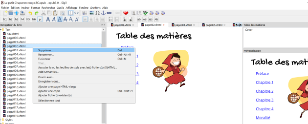 Une fois le texte importé sur une page xhtml dans Sigil, il va falloir découper les chapitres, en créant une page par chapitre.